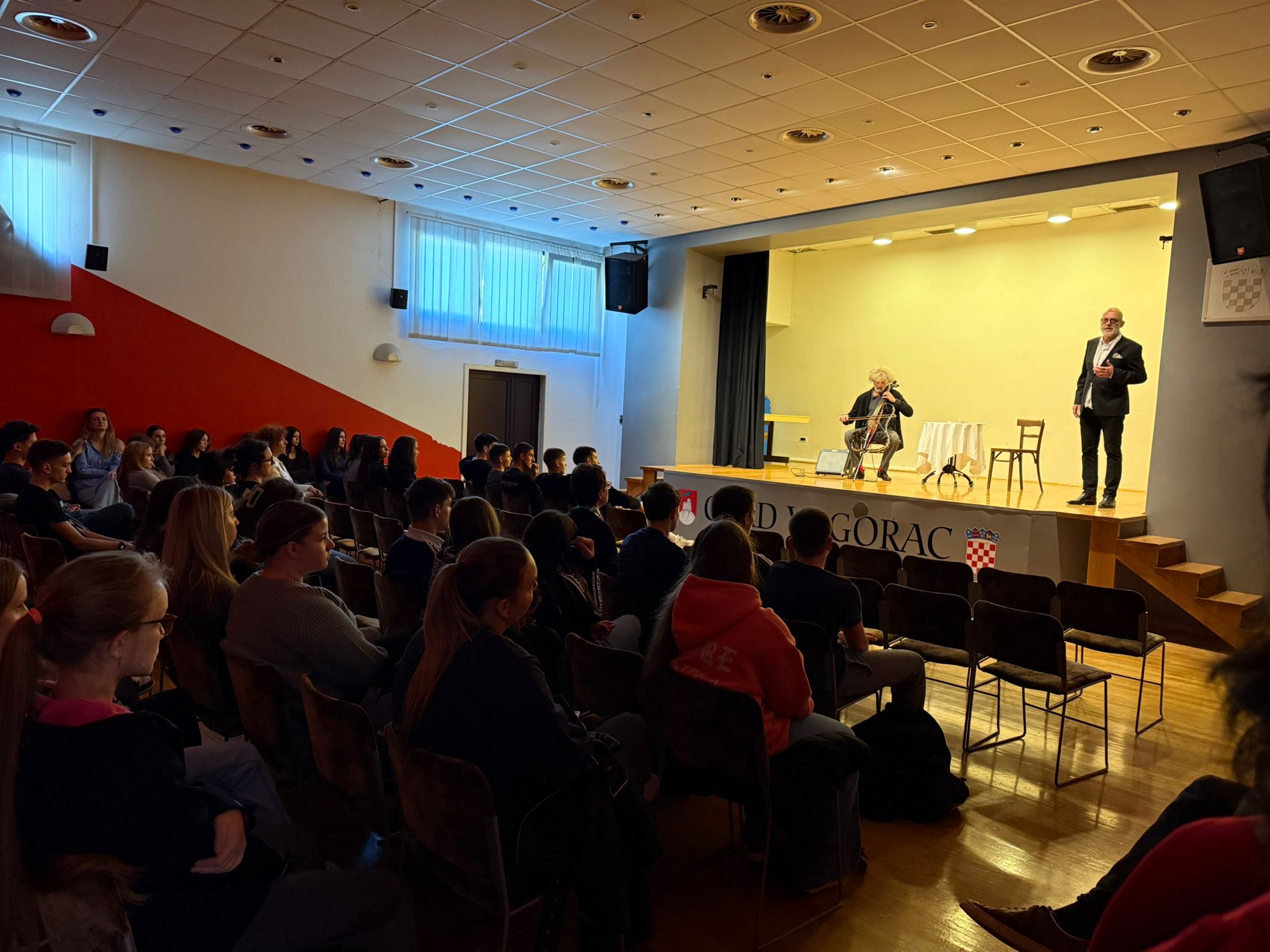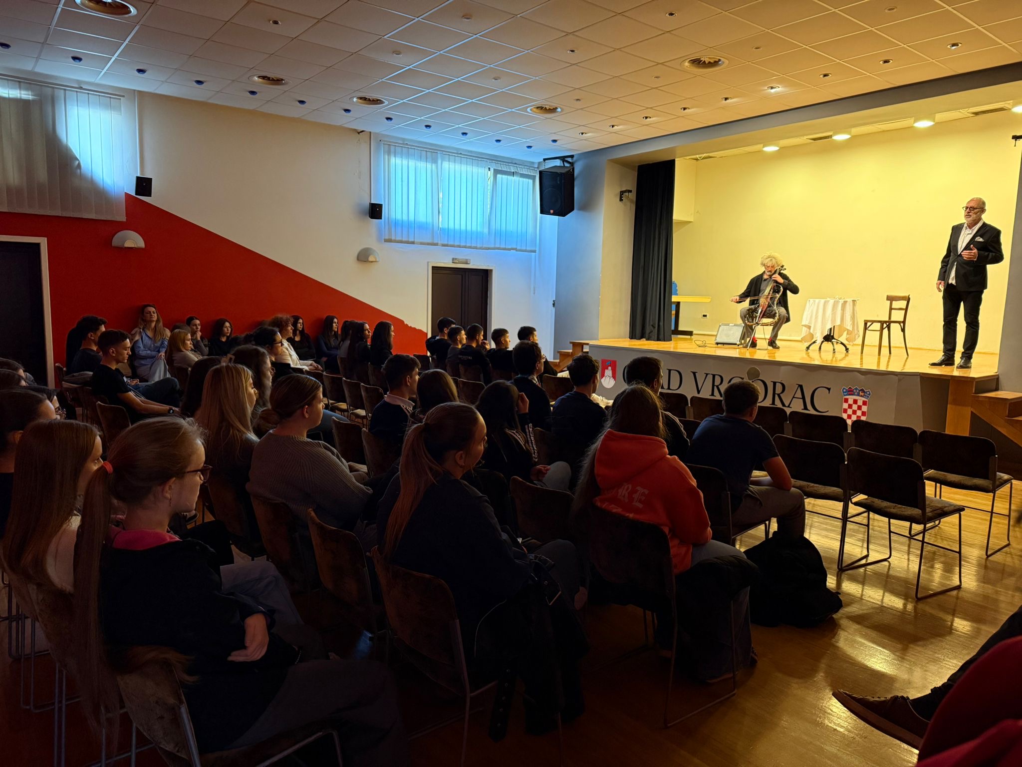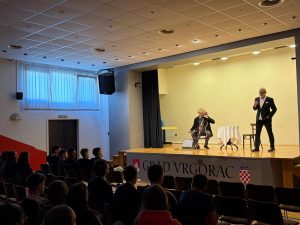 Učenici naše škole imali su priliku pogledati monodramu “Sjetite me se 2022.”, autora Gorana Matovića, satkanu od sjećanja na susrete s Miroslavom Krležom, fragmenata njegova bogatog opusa i žive glazbe u organizaciji Centar za kulturu i baštinu Grada Vrgorca.